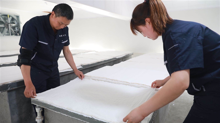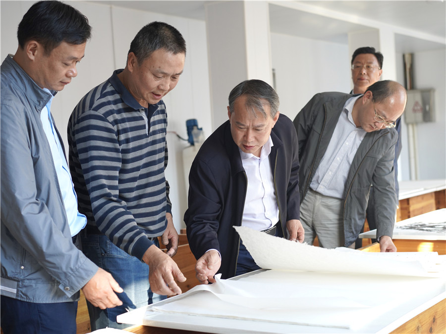 10月9日下午,縣長吳云忠赴海陽鎮(zhèn)凝霜文化發(fā)展公司調(diào)研徽州楮皮紙傳承與發(fā)展工作,縣委常委、海陽鎮(zhèn)黨委書記金學(xué)年,縣委常委、縣政府副縣長程衛(wèi)華參加調(diào)研活動。 吳云忠一行實(shí)地察看了徽州楮皮紙生產(chǎn)工藝流程,認(rèn)真聽取企業(yè)負(fù)責(zé)人介紹,詳細(xì)詢問徽州楮皮紙制作工藝