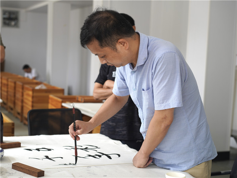 感謝休寧縣書法協(xié)會主席胡社文陪同安徽省青年書法家協(xié)會主席王亞洲等藝術(shù)家到公司指導(dǎo),體驗(yàn)徽州楮皮紙傳統(tǒng)技藝。