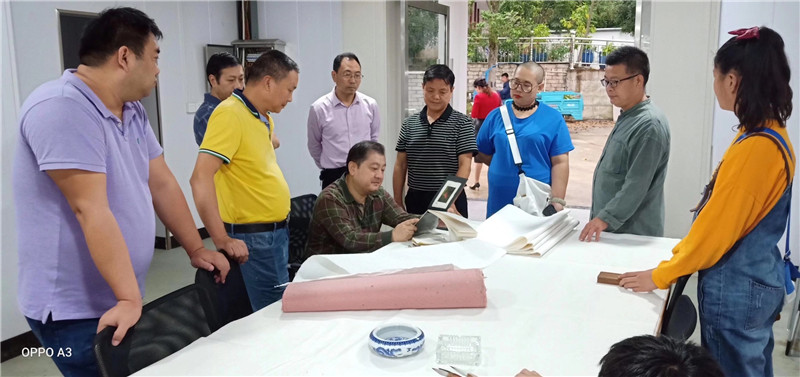 感謝休寧縣書(shū)法協(xié)會(huì)主席胡社文陪同安徽省青年書(shū)法家協(xié)會(huì)主席王亞洲等藝術(shù)家到公司指導(dǎo),體驗(yàn)徽州楮皮紙傳統(tǒng)技藝。
