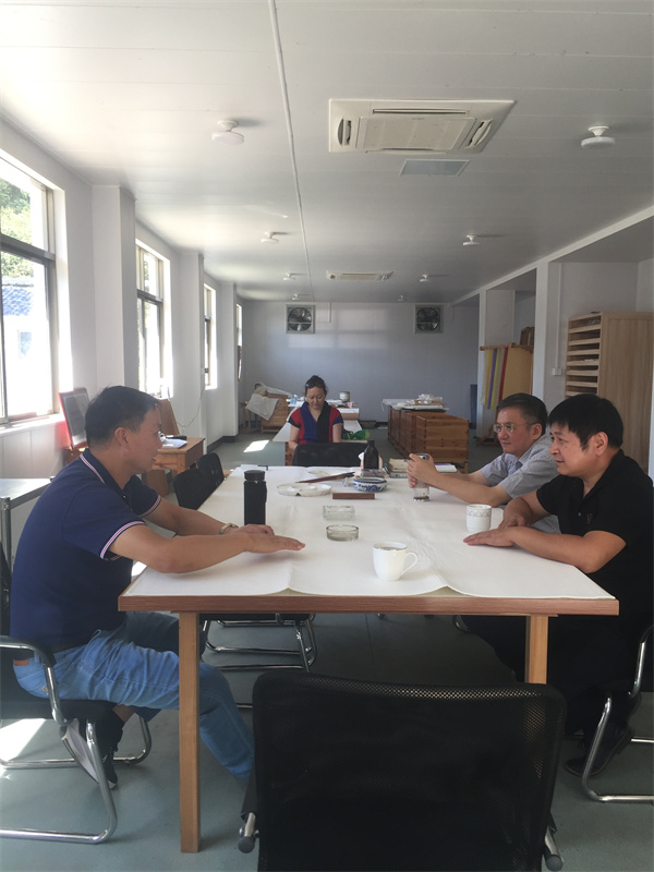 中科大湯書(shū)昆院長(zhǎng)、徽硯大師朱岱老師以及竹紙工藝大師來(lái)我公司參觀(guān)學(xué)習(xí),探討紙制作技藝、進(jìn)行紙文化交流。